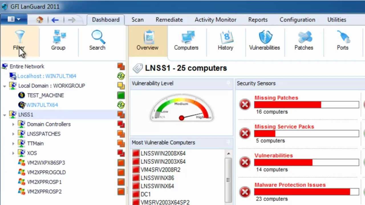La comprobada experiencia en software de TI permite a GFI desarrollar soluciones de tamaño adecuado, de modo que esten inteligentemente diseñadas y seguras para beneficiar su negocio. GFI Languard® es un escaner de seguridad de red y gestión de actualiazaciones, actua como un consultor virtual de seguridad.