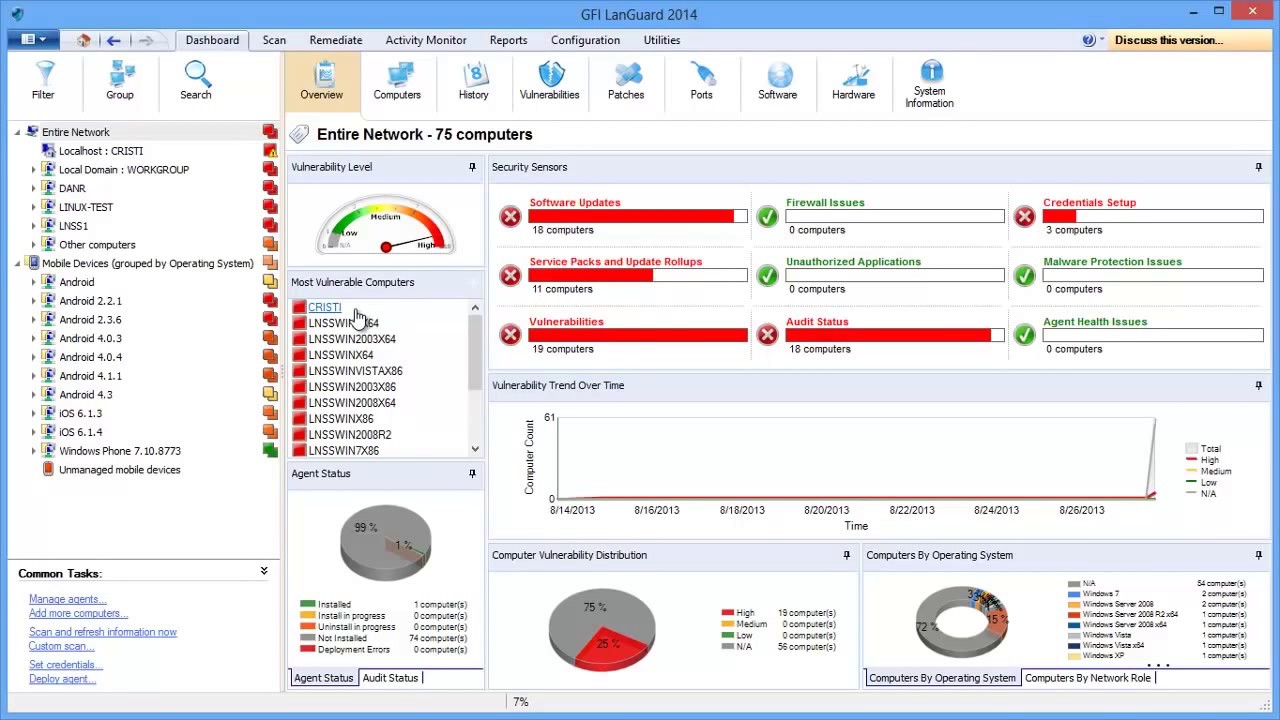 GFI LanGuard® es una solución de seguridad inteligente diseñada para fortalecer la infraestructura de TI y proteger a las organizaciones mediante administración de actualizaciones, evaluación de vulnerabilidades y auditoría centralizada. Se comporta como un consultor virtual de seguridad que ayuda a reducir riesgos antes de que se conviertan en amenazas reales.